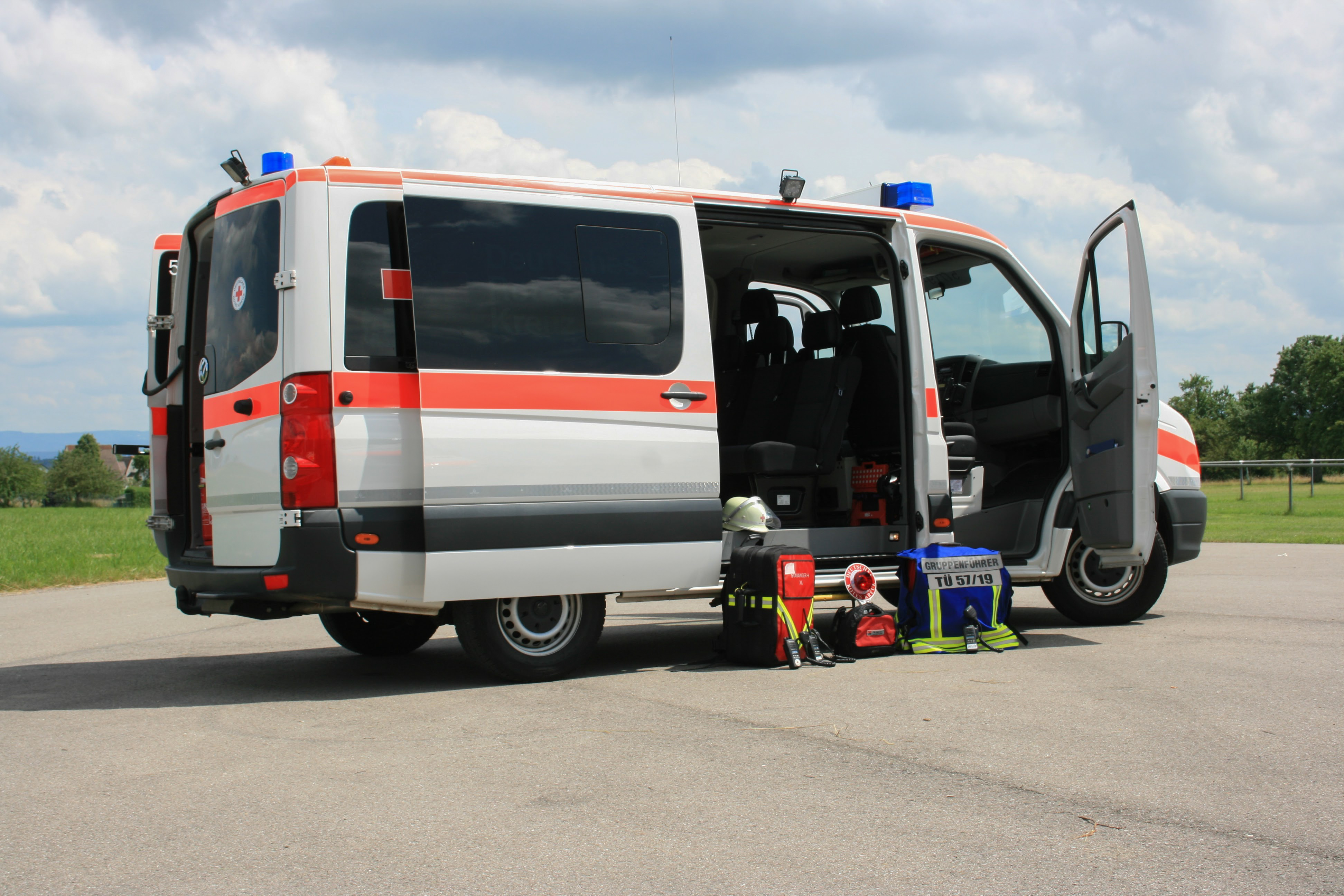 3 Notfallrucksäcke, Flaggensatz, Handlampen, klappbare Krankentrage, Führungskräftekennzeichnungswesten, Kindersitze, Absperrmaterial